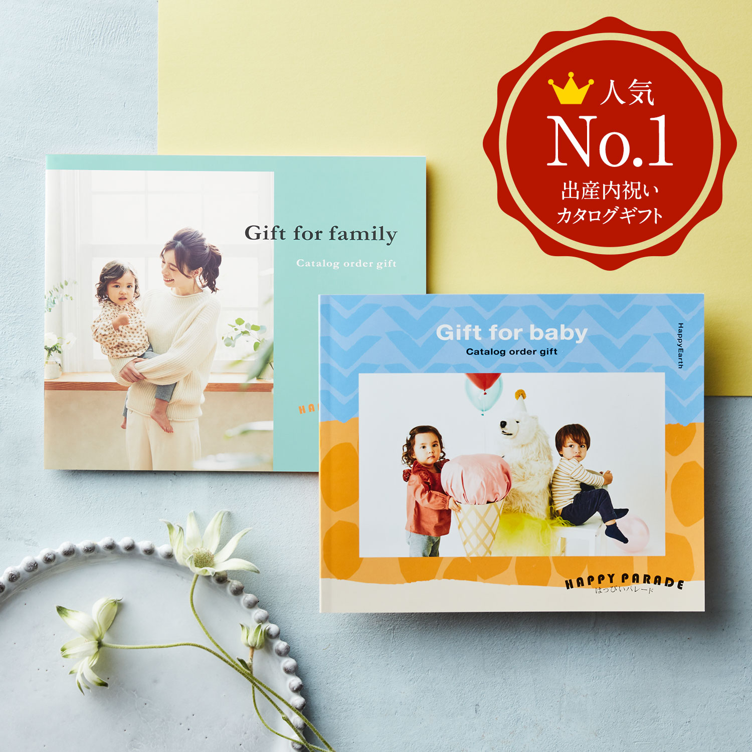 出産を経験したご家族へ贈る、おしゃれなご褒美アイテムを揃えたカタログと赤ちゃんと過ごす毎日が楽しくなる、選りすぐりのベビーアイテムのカタログが2冊セットになった、千趣会オリジナルのカタログギフト「はっぴいパレード」。